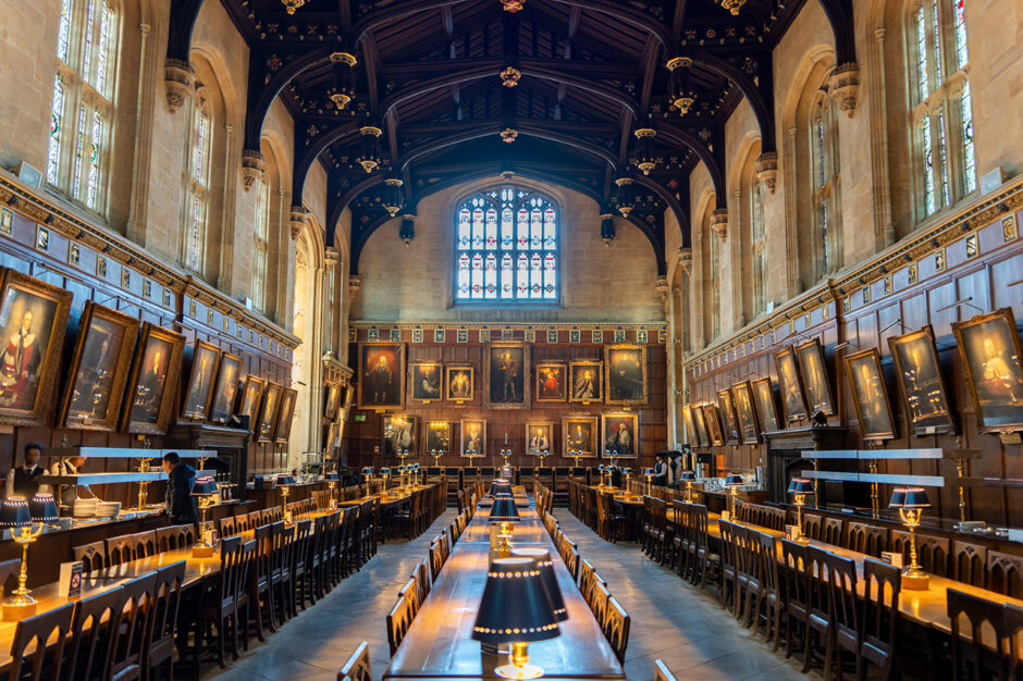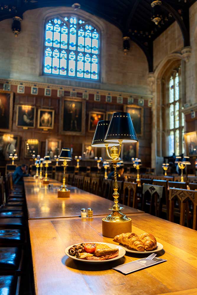ホグワーツの大広間のモデル地となったのは、オックスフォード大学「クライスト・チャーチ」の「グレート・ホール」。ここで朝食を食べるためには、「クライスト・チャーチ」の学生寮に泊まることが必要です。注意が必要なのは、オックスフォード大学の泊まれる学生寮は複数あること。私はクライスト・チャーチの「Liddell Building」に宿泊し、その夢を叶えました。