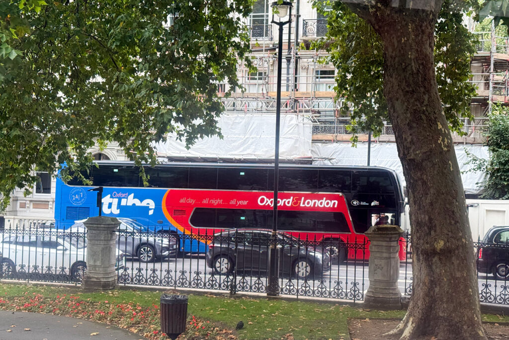 ただ、タイミングが悪くバス停「Marble Arch」が工事中で、臨時のバス停が発見できず、1時間ほど右往左往……。結局、「Marble Arch」の前のバス停まで移動してから、乗車しました。Oxford Tubeは1時間に数本出ているので、1本遅れても焦る必要がないこと、Webでチケットを買っても時間指定ではないことも利用しやすいポイントでした。オックスフォードに到着したのは、ロンドンを出発して2時間後くらいでした。